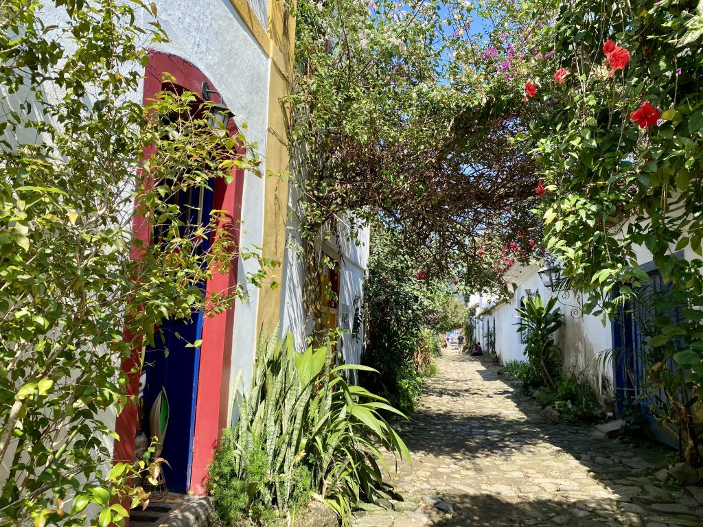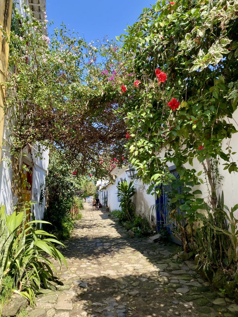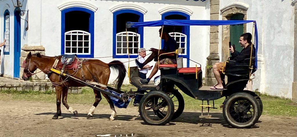 Kaum eine Stadt in Brasilien hat übrigens eine vergleichbar spektakuläre Lage an einer mit Inseln übersäten Bucht vor dem Hintergrund steiler dschungelbedeckter Berge. In den verkehrsberuhigten Strassen der Altstadt – nimmt man mal die zahlreichen Kutschen aus – reihen sich elegante weiße Häuser mit bunten Schmuckleisten und Gitterfenstern aneinander und verschmelzen harmonisch mit der Schönheit der Natur ringsum. Die Altstadt zu erkunden machte uns viel Spaß, wir mussten jedoch höllisch aufpassen, daß wir uns auf dem originalen, ehemals von Sklaven verlegten Kopfsteinpflaster keinen Bänderriss zuzogen.