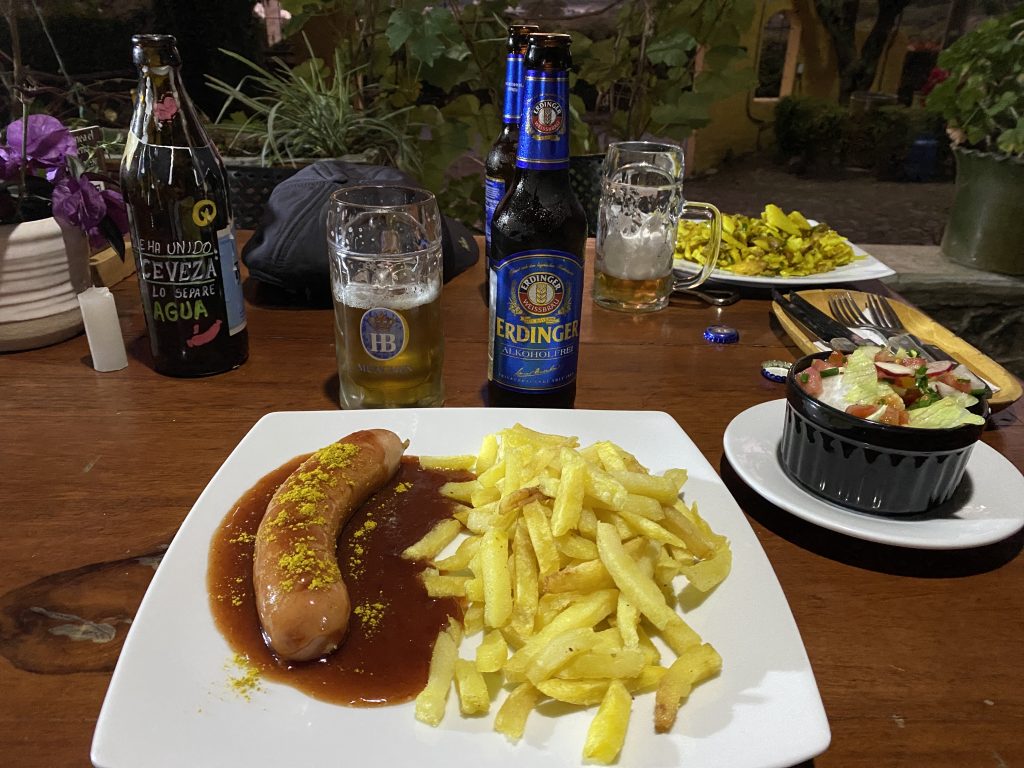 Es scheint mittlerweile so, daß deutsche Kultur und Kulinarik in fast jedem Land Südamerikas in der einen oder anderen Form anzutreffen ist. Waren es die Nachfahren deutscher Aussiedler in Blumenau (Brasilien) und deutsche Expats im Club Germania in Lima (Peru), die wir besuchten, so ist es hier in Ecuador ein von Hansjörg Schütter, gebürtiger Nord-Deutscher, liebevoll hergerichteter Campingplatz in Ibarra mit dem alles sagenden Namen „Finca Sommerwind“, der uns eine echte Manta-Schale mit Erdinger Weißbier alkoholfrei bescherte 😂. Kulinarische Abwechslung kam uns trotz des schmackhaften südamerikanischen Essens hier durchaus ganz gelegen … ! 😜