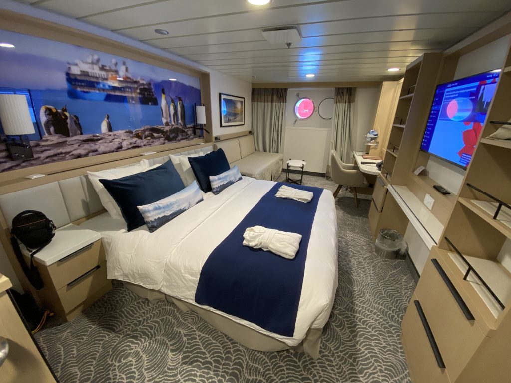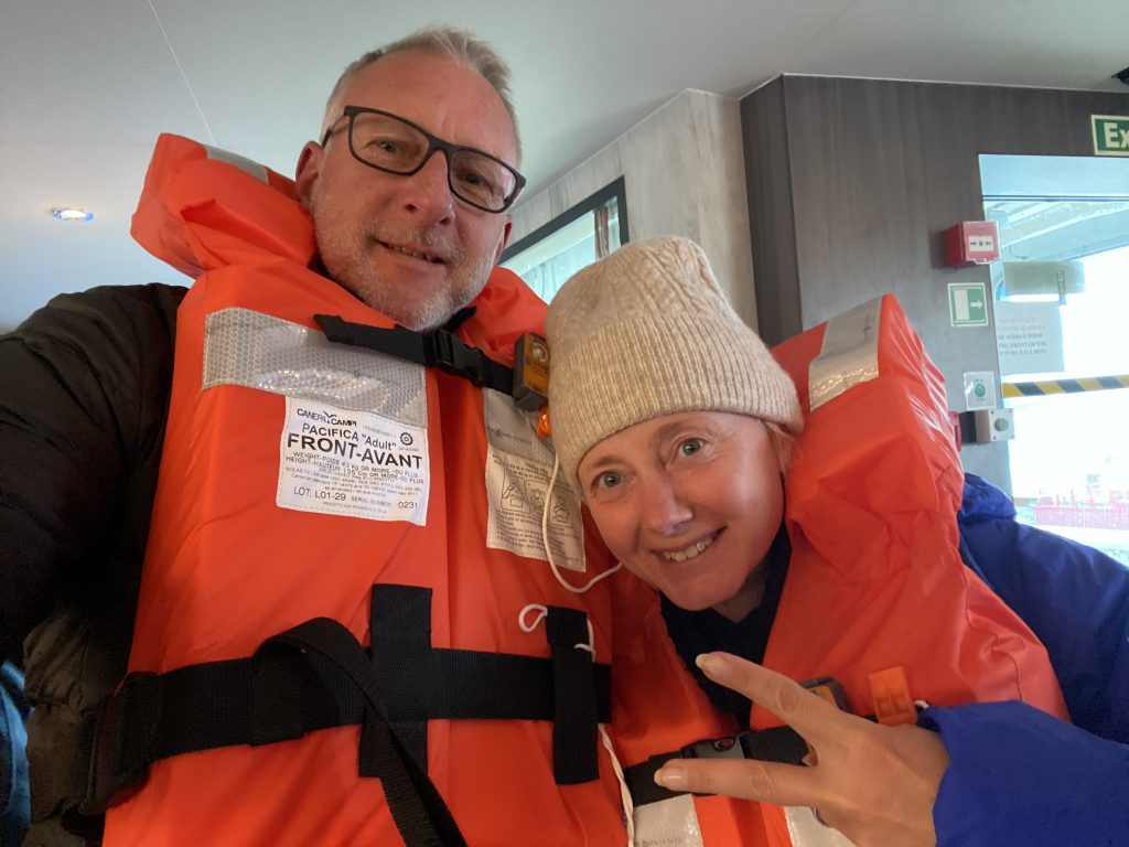 Solche paradiesischen Zustände sind sicher nicht Alltag aber wir hatten Glück, als wir heute Morgen nach der ersten Nacht an Bord aufwachten. Der Kellner im Frühstücksrestaurant meinte dazu nur: „I‘ve never had such a calm sea while travelling to or from antarctica!“. Natalie wird das sicher nicht trösten, die Seekrankheit hatte sie wieder fest im Griff … glücklicherweise nicht so stark, wie 2019 auf dem Weg nach Island, da ging‘s ihr bei 10m-Wellen richtig dreckig.
