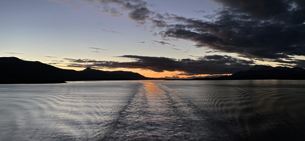 So legten wir gestern also pünktlich um 18 Uhr nach dem obligatorischen Security-Briefing von Ushuaia in den Beagle-Kanal Richtung Osten ab. Der Beagle-Kanal mündet in den Atlantik, von dort wurde Kurs Richtung Süden angelegt – Ziel: die südlichste Spitze Südamerikas – das berüchtigte Kap Hoorn – und von dort in die noch berüchtigtere Drake-Passage, die bereits vielen Schiffen aufgrund ihres oft extrem rauen und stürmischen Seegangs, sowie den Wetter- und Strömungsbedingungen zum Verhängnis geworden ist … früher sicher mehr als heutzutage …