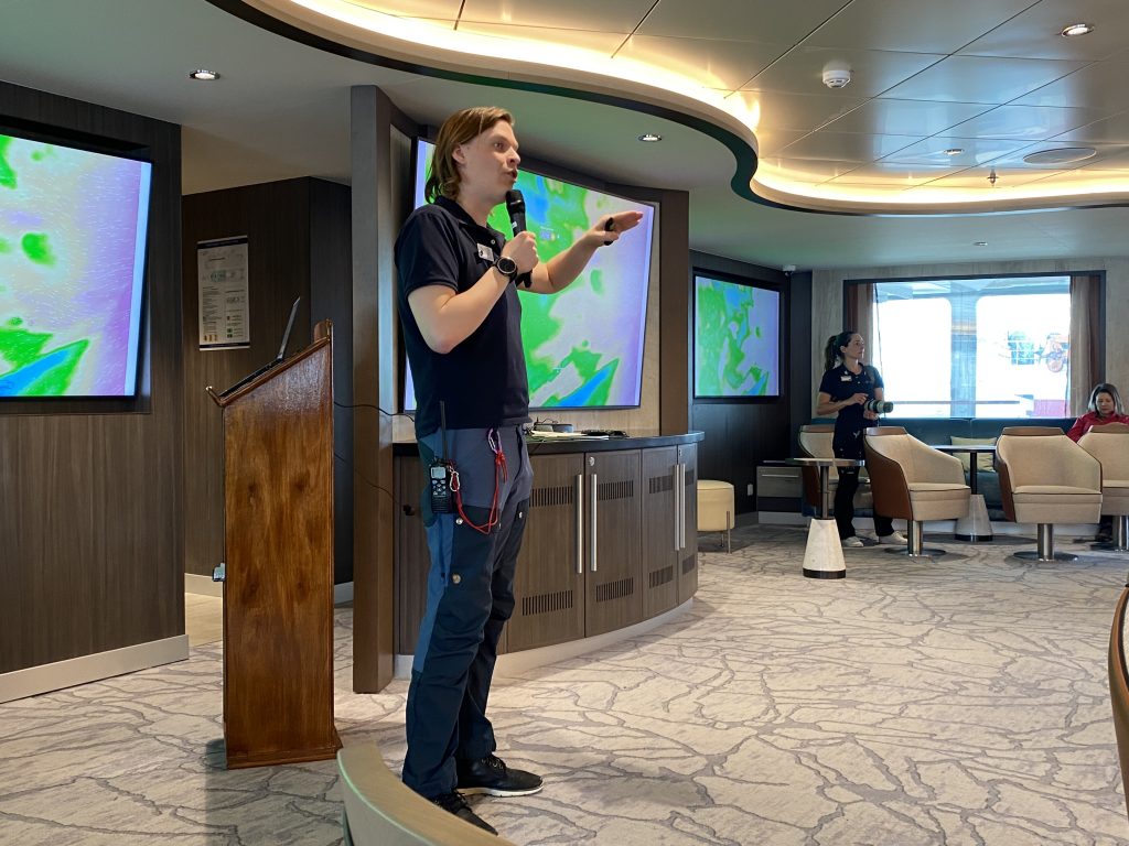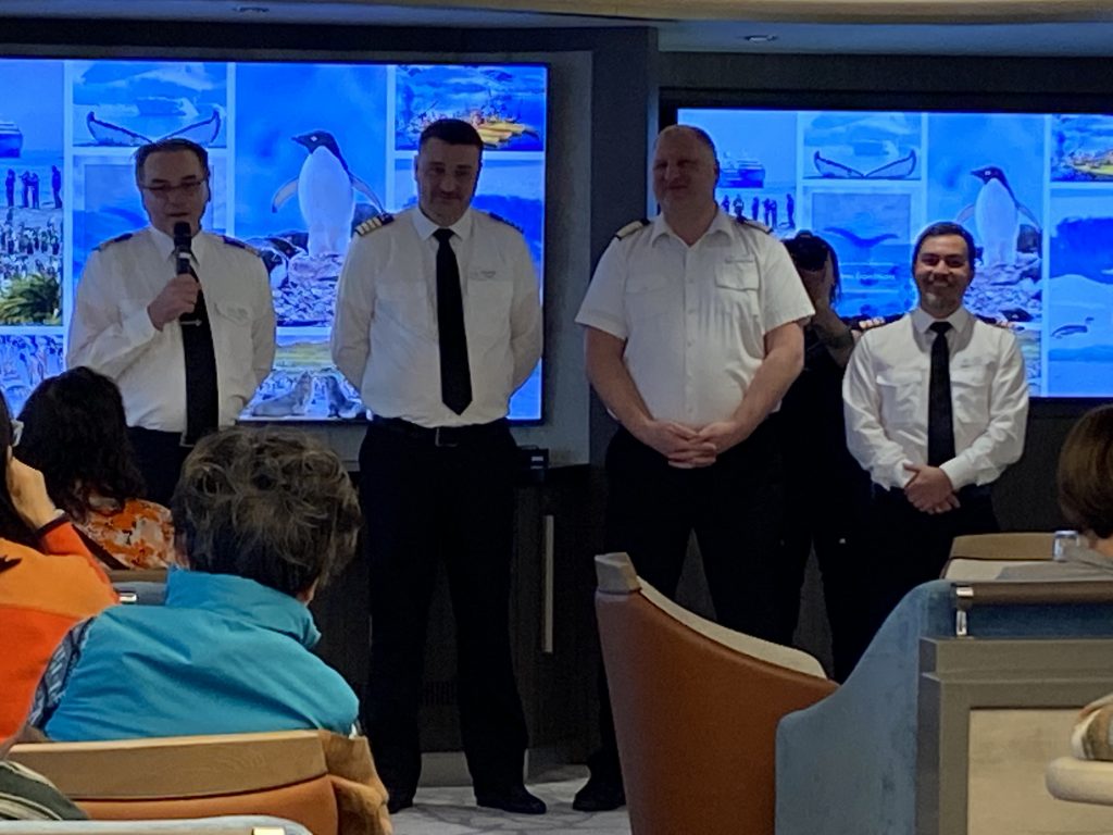Auf jeden Fall ist so eine Reise viel persönlicher und individueller, stehen doch den 127 Reisenden auf unserer Tour alleine 97 (!) Besatzungsmitglieder aus 24 Ländern gegenüber. Die 20 Expeditionsmitarbeiter davon haben sich heute – nach dem Kapitän und seinen Offizieren versteht sich – alle persönlich vorgestellt. Vom Zodiac-Fahrer, Kajak-Führer, Biologen, Gletscher- und Eisbergwissenschaftler, Antarktis-Spezialisten bis hin zu Ornithologen, Veterinären und Wal-Spezialisten ist quasi jede Fachrichtung vertreten, die Dich auf dieser außergewöhnlichen Reise mit jedweder Art der Information versorgen kann. Zu dem Tagesablauf auf dem Schiff und den Exkursionen gehen wir in einem separaten Beitrag detaillierter ein.