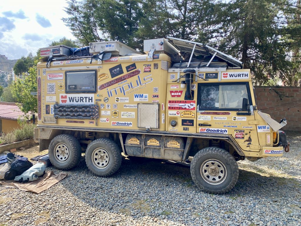 Am folgenden Montag fuhren wir dann die steilen und engen Gassen der Doppelmetropole El Alto / La Paz hinunter nach La Paz zu unserem Campingplatz Las Lomas, wo wir bei Marcos und seiner Familie 6 ruhige und ereignisreiche Tage verbrachten. Da Marcos seinen Campingplatz mit einer KFZ-Werkstatt kombiniert hat, bot sich hier für uns auch die einmalige Gelegenheit, das eine oder andere Wehwehchen an Chop-Chop zu beseitigen – Marcos legte hier tatkräftig seine erfahrene Hand an.
