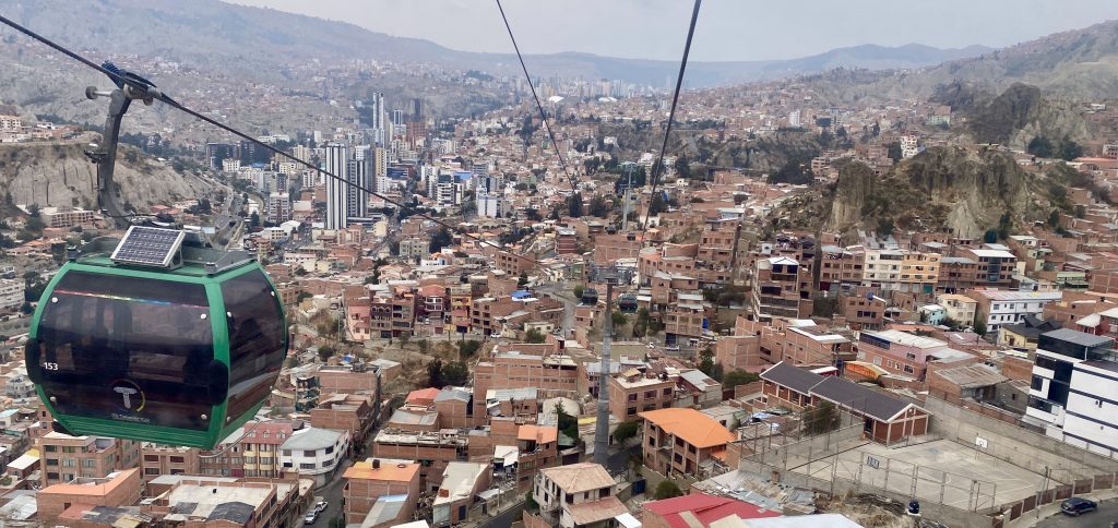 La Paz und El Alto sind eine wahrhaft einzigartige Doppelmetropole – in vielerlei Hinsicht! Zunächst einmal ist La Paz die höchstgelegene Stadt der Welt. Die Verwaltungshauptstadt Boliviens liegt auf 3.869 Meter über dem Meeresspiegel. Darüber hinaus gibt es nur in der „Stadt des Friedens“ ein öffentliches Seilbahnnetz von mehr als 30 Kilometer Länge – erbaut vom österreichischen Weltmarktführer Doppelmayr. Die Teleferico ist mit derzeit zehn Linien und mit 33 Kilometer Gesamtlänge das weltweit größte städtische Seilbahnnetz, welches als öffentlicher Nahverkehr genutzt wird. Die Gondelbahnen erschließen den bolivianischen Regierungssitz La Paz und die Nachbarstadt El Alto und befördern täglich mehr als 300.000 Fahrgäste. Das Bolivien das Land mit der mit 60% höchsten Quote indigener Bevölkerung in Südamerika ist, sieht man auch in La Paz sehr deutlich. Neben den Nachfahren europäischer Einwanderer und der spanischen Eroberer, leben hier vor allem Aymara- und Quechua-Stämme.