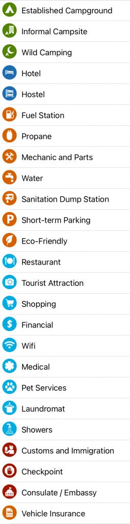 Hier eine Übersicht der Kategorien, damit ihr verstehen könnt, warum diese App für alle Selbstreisende in Südamerika ein Segen ist.