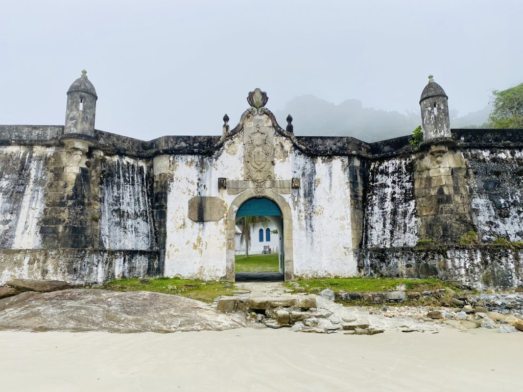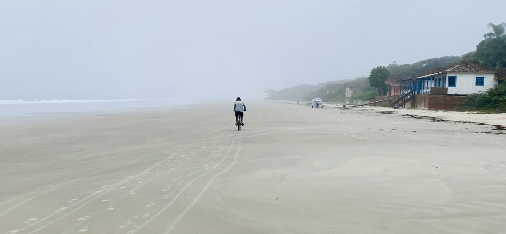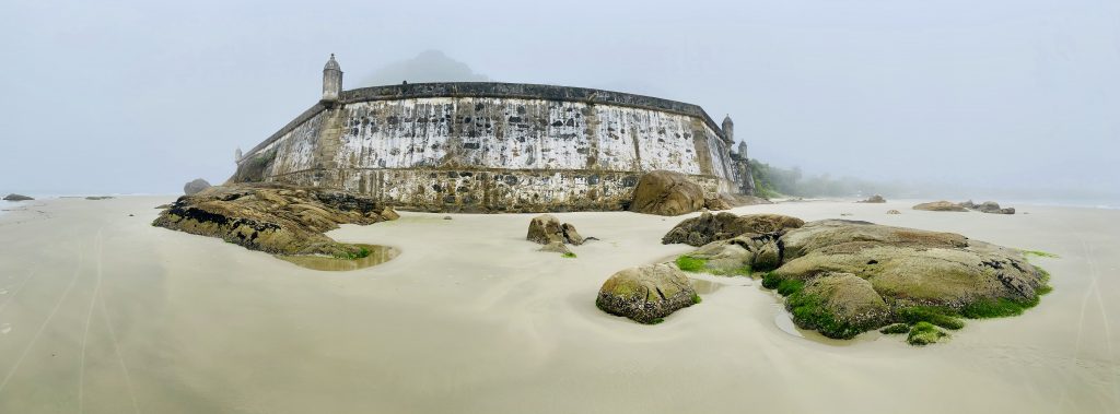 Die wie eine Sanduhr geformte Insel ist der unberührteste und malerischste Urlaubsort im gesamten Süden Brasiliens und liegt strategisch günstig am Eingang zur Baia de Paranagua. Ein mächtiges, direkt am Strand gelegenes pittoreskes Fort aus dem 1760er Jahren, die Fortaleza de Nostra Señora dos Prazeres, zeugt von der militärisch relevanten Geschichte der Insel. Die „Honiginsel“ wird insbesondere für ihre wilden Strände, die guten Wellen zum Surfen und ihre malerischen Küstenwanderwege geschätzt. Sandige Wege durchziehen die Insel, auf der es kein einziges Auto gibt. So ist die Ilha do Mel ein Refugium für Surfer und Strandurlauber sowie für alle, die Erholung, ein schlichtes Ambiente und Abgeschiedenheit suchen. Im derzeitigen brasilianischen Winter kommen diese Aspekte aufgrund der geringen Touristenzahl deutlich stärker zur Geltung, insbesondere an Tagen, wie dem unseres Besuchs, an dem im Winter üblicher mystischer Küstennebel über den dann windstillen Stränden und Regenwäldern hängt und die Insel surreal-gespenstisch erscheinen lässt.