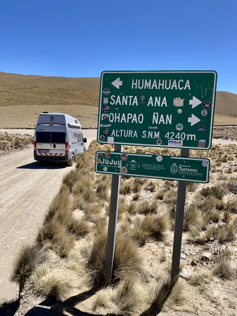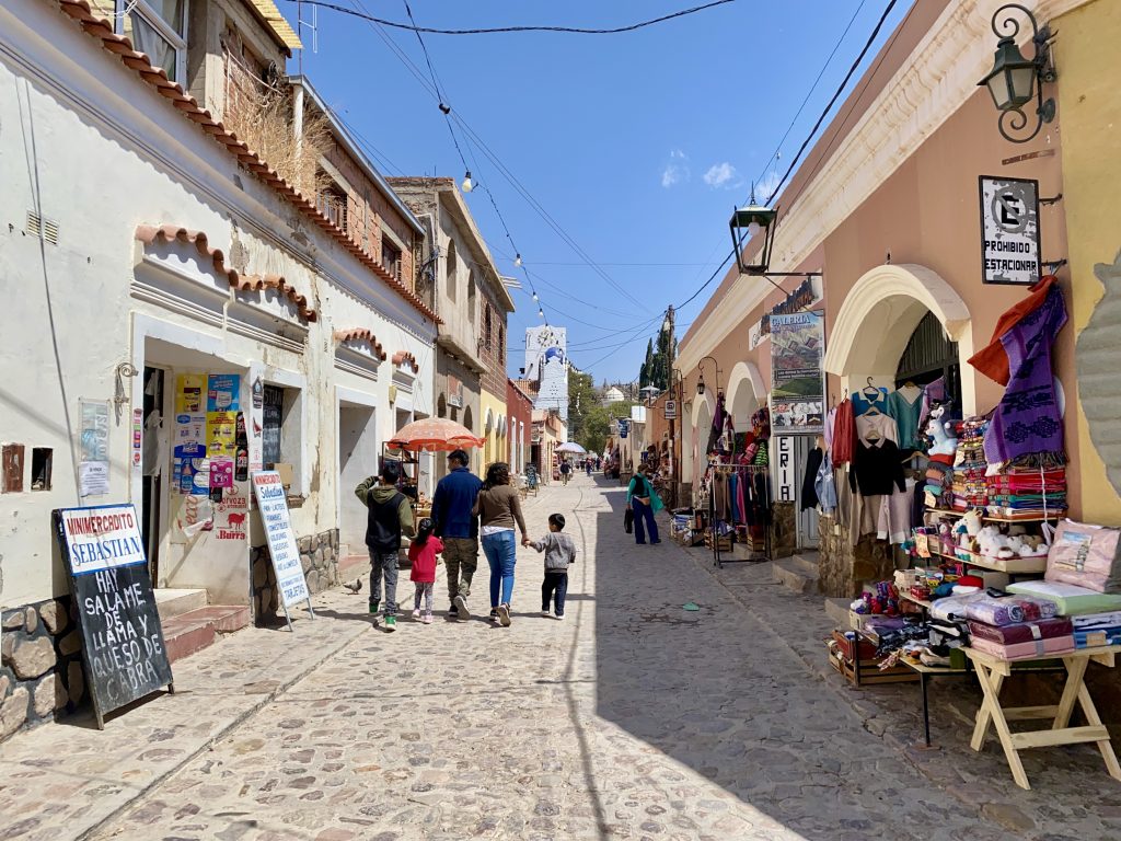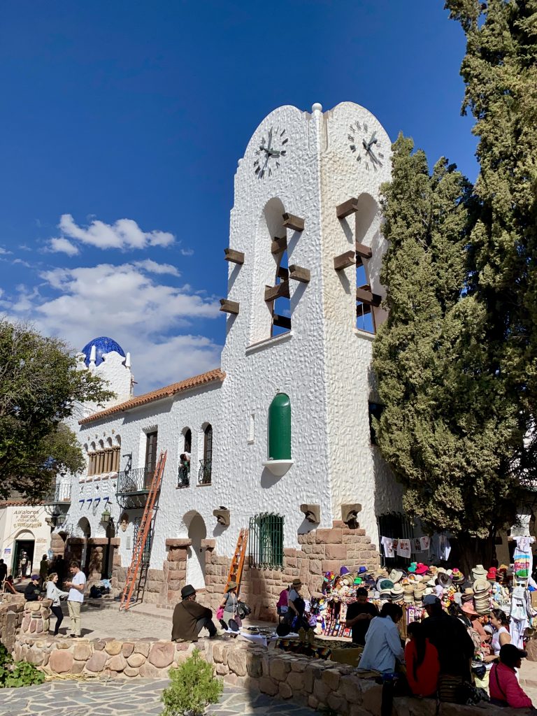 Auf dem Rückweg fuhren wir über das verlassen wirkende, äußerst stille kleine Dorf Uquia mit seiner knallig-roten „Quebrada de las Señoritas“ bis in das bildschöne Tilcara, der touristischen Metropole des Tals. Das Nebeneinander einer jahrhundertealten Lebensweise, wie sie von den einheimischen Bauern gepflegt wird, und dem modernen Jetset der Großstadtflüchtigen auf der Suche nach ländlicher Ruhe, hat eine interessante Balance in den Straßen der Stadt hervorgebracht, die wir bis tief in die Nacht beobachteten – von unserem Stellplatz direkt an der „Plaza Sarmiento“.