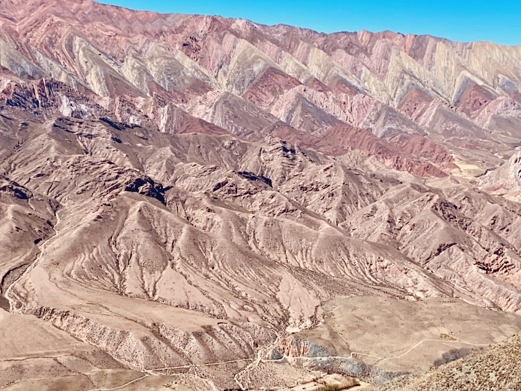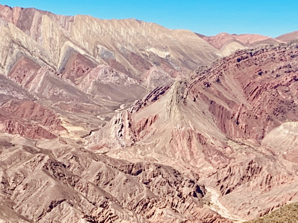 Von Humahuaca aus fuhren wir am gestrigen Sonntag in 25 Kilometern auf eine Höhe von 4.350 Metern – Ziel: Cerro Hornocal. Dieser Berg präsentierte uns in atemberaubender Schönheit seine gezackte Reihe von „Haifischzähnen“ in überwältigenden Farben. Wir waren von diesem Anblick geflasht und konnten unsere Blicke einfach nicht von diesem grandiosen Naturspektakel abwenden.