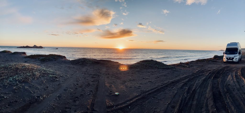 So verbringen wir die heutige Nacht an diesem skurrilen Strand, 20 Meter von der Brandung des Pazifiks entfernt und lauschen den Wellen und dem Heulen der Seelöwen … gute Nacht! 💤
