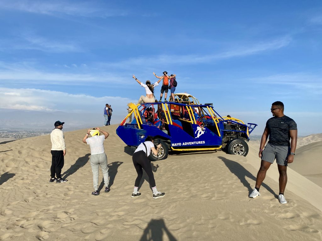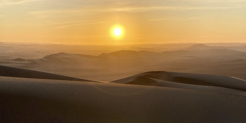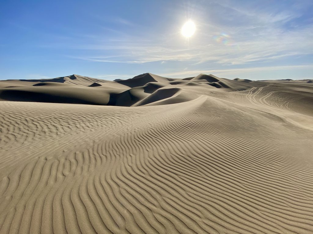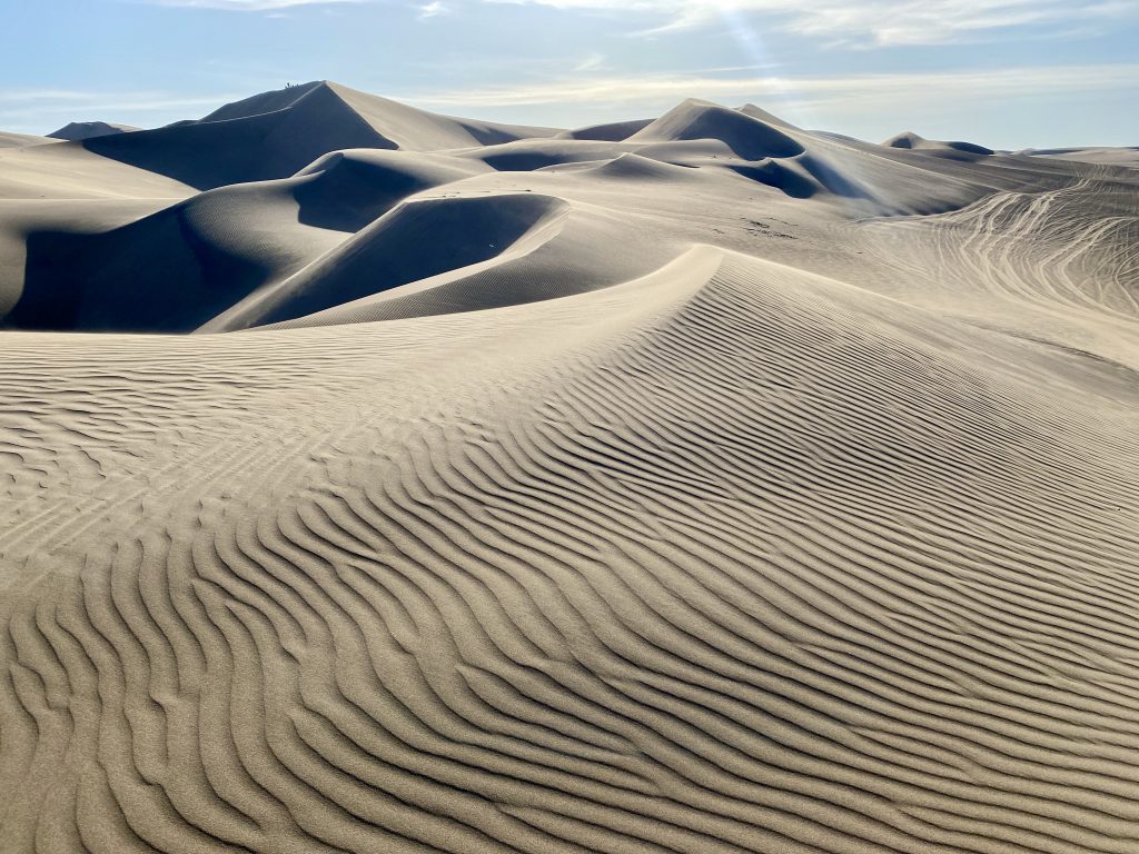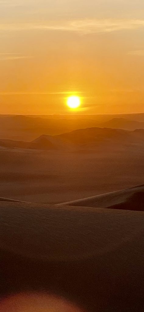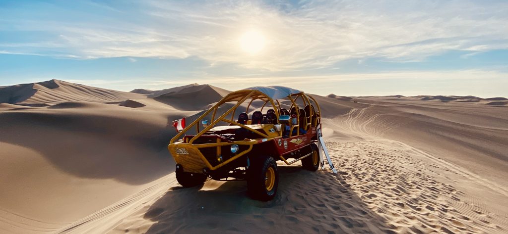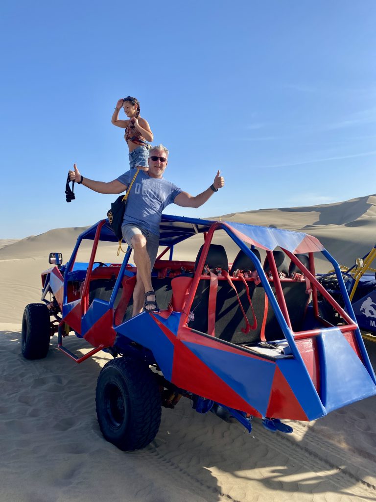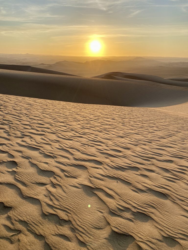 Die Oase besteht nur aus einem idyllischen See mit ein paar Palmen und einigen Straßen drum herum und ansonsten ist da nur: Sand – und zwar so weit das Auge reicht. Die Dünen sind hier bis zu 200 Meter hoch und bieten super Spots, um den Sonnenuntergang zu beobachten. Das absolute Highlight in Huacachina ist jedoch eine Sandbuggy und Sandboarding Tour. Ganz mein Fall, Natalies weniger … ihr wißt ja, Seekrankheit und so … auf einem Sandbuggy geht‘s halt ähnlich schaukelig zu, wie auf einem Antarktis-Schiff bei einem Hurrikan … you remember?