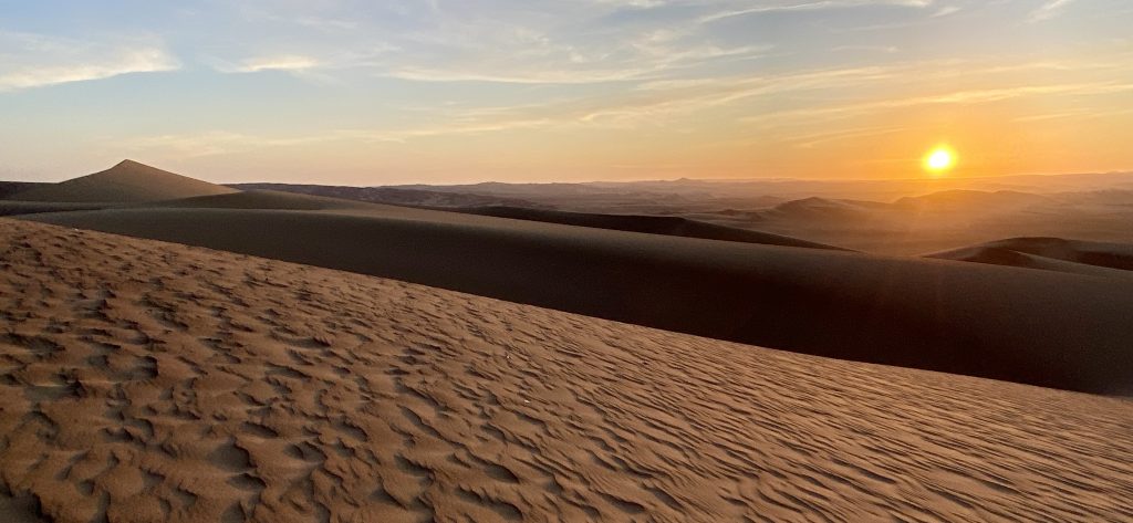 Bei Peru denken viele oft zu allererst an Machu Picchu, dann vielleicht noch an die Rainbow Mountains oder den Amazonas. Aber dass sich in Peru eine riesige Wüste inklusive einer wunderschönen Oase befindet, das haben viele nicht auf dem Schirm. Dabei wartet mit der Wüstenoase Huacachina in der Atacama Wüste (ja immer noch die aus Chile, die sich bis hierhin zieht 😉) im Westen nahe der Pazifikküste ein Ort wie aus dem Bilderbuch … wie geschaffen für uns!