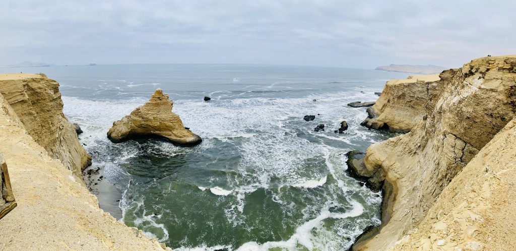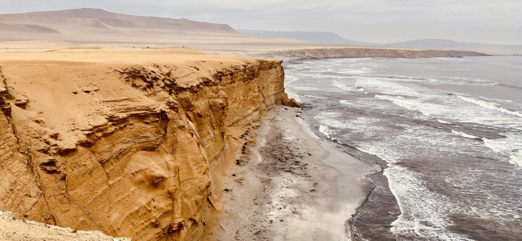 So ging es am Mittwoch für 2 weitere Tage direkt an die Pazifikküste nach Paracas und die Paracas-Halbinsel. Das Natur-Reservat der Paracas-Halbinsel mit seinen vorgelagerten Inseln ist Heimat von tausenden Vögeln wie Pelikane, Kormorane und Perutölpel, aber auch von Seelöwen, Delfinen und Humboldt-Pinguinen! Die Kleinstadt Paracas ist das Tor zu diesem Naturparadies und selbstredend deshalb auch eines der touristischen Hotspots Perus. Die wilde Mischung aus Wüste und Küstenlandschaft mit Steilklippen wie an der Algarve hat uns wirklich beeindruckt, auch weil wir mit Chop-Chop entspannt auf einem Rundweg alle interessanten Orte an einem Tag abfahren konnten … das ist hier in Südamerika ja oftmals ganz anders 😜.