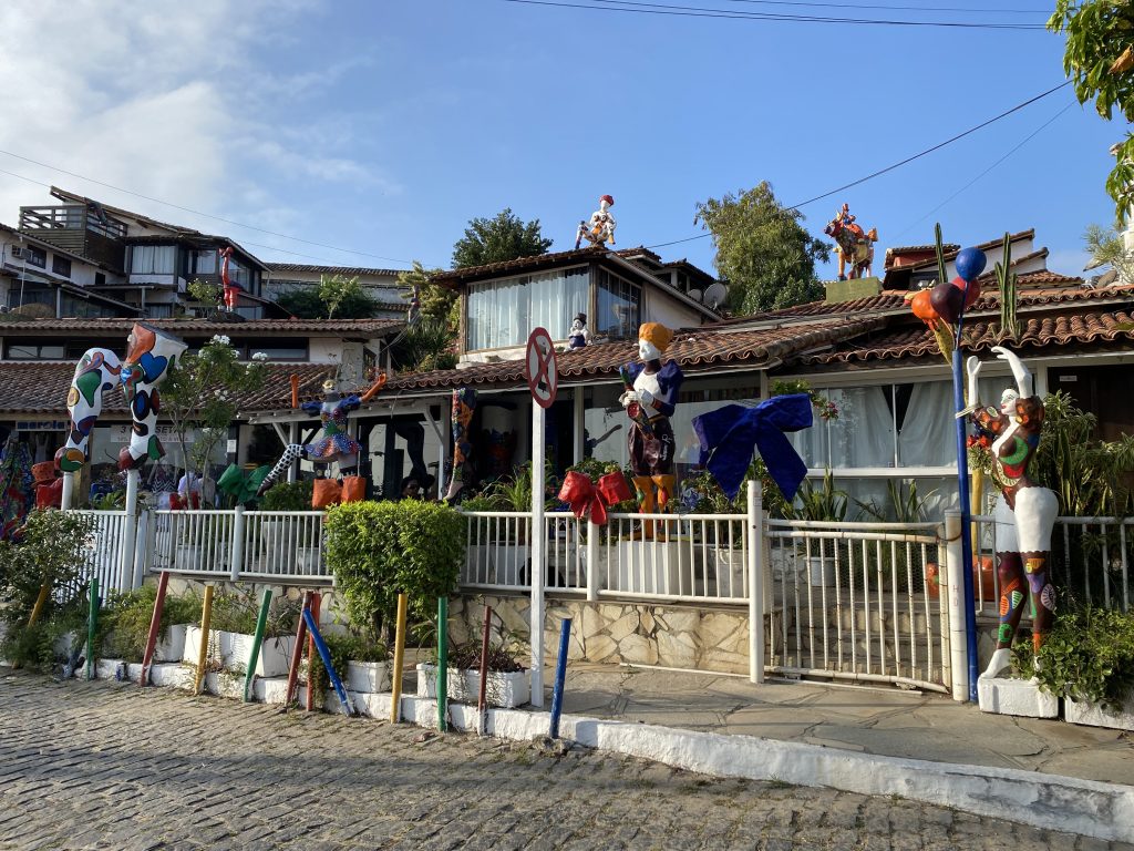 Die kopfsteingepflasterte Hauptstrasse der Stadt ist eine wunderschöne Uferpromenade, die Buzios älteste und malerischste Viertel Armaçao und Ossos miteinander verbindet. Bei unserem Spaziergang am Ufer entlang konnten wir mehrere Statuen der Bildhauerin Christina Motta entdecken, darunter eine von Brigitte Bardot, des früheren brasilianischen Präsidenten Juscelino Kubitschek sowie einige bemerkenswert realistisch wirkende Skulpturen von Fischern, die ihre Netze einholen.