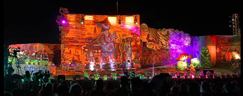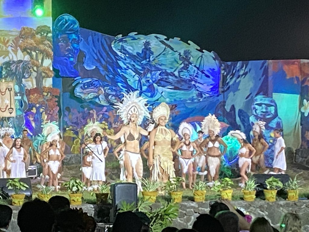 Entdeckung und Besiedlung durch die Ureinwohner, erster Kontakt anno 1722 durch den niederländischen Seefahrer Jakob Roggeveen, Sklaverei (die Rapa Nui waren im 19. Jahrhundert bis auf 111 Seelen durch Sklaverei nahezu ausgerottet) , Unabhängigkeit, Annexion durch Chile, Umweltverschmutzung und Umgang damit … all diese Facetten der jahrhundertealten Historie Rapa Nuis wurden und werden in den musikalischen Darbietungen mal fröhlich, mal melancholisch verarbeitet und künstlerisch in unterschiedlichsten handgearbeiteten und farbenfrohen Kostümen tänzerisch dargeboten. Das alles im Kontext eben so alter überlieferter Lieder – begleitet durch ur-polynesische Musikinstrumente, wie die bekannten Ukelele und Gitarre oder die eher unbekannten, wie Maea, Keho, Hio, Kauaha oder Upa-Upa … einmalig …