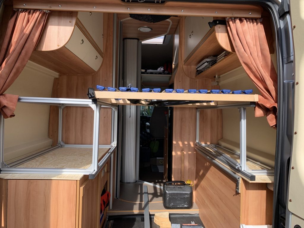 - Höherlegung des Bettes, um den Stauraum der Heckgarage zu vergrößern